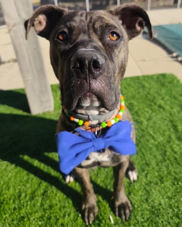 J'accompagne souvent ma maman pour l'aider dans ses cours d'éducations. Mon allure impressionne mais je suis le chien le plus respectueux, patient, j'aime tout le monde, et je prend souvent quelque chose en gueule pour me rassurer.