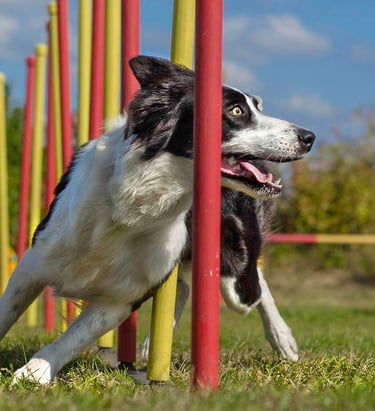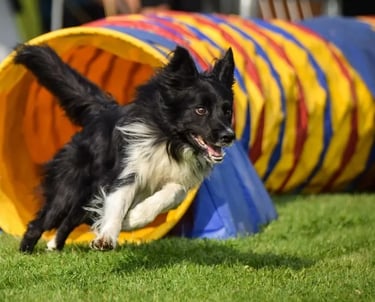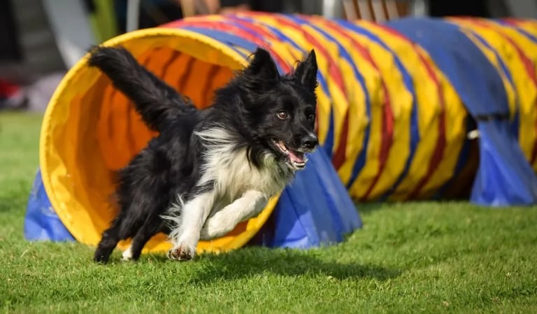 L’agility est un sport canin ludique et éducatif où le chien franchit un parcours d’obstacles guidé par son humain, sans laisse ni friandise.