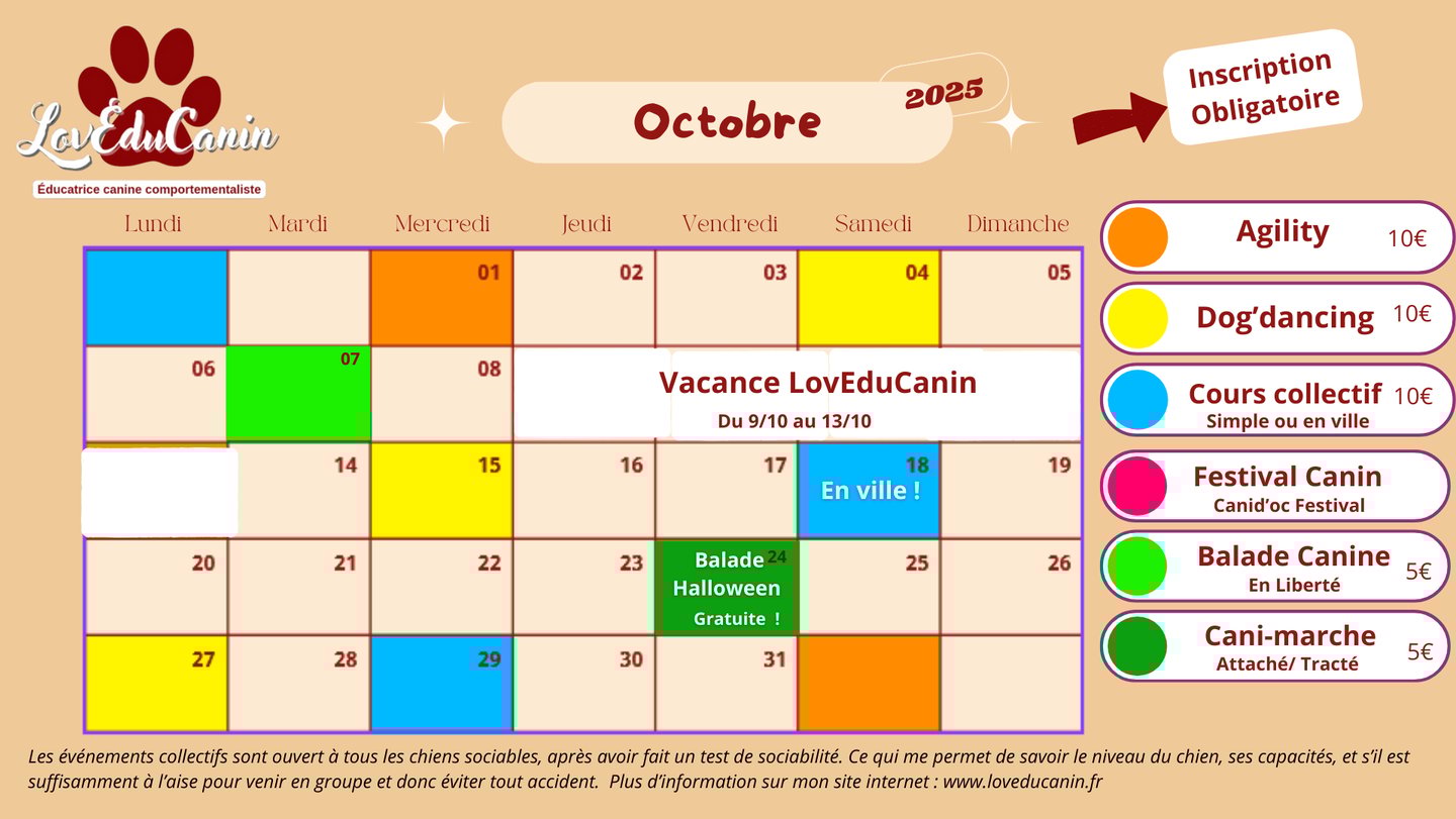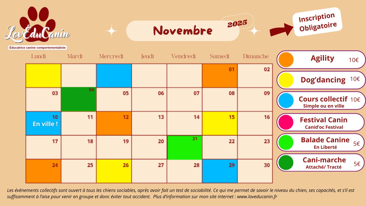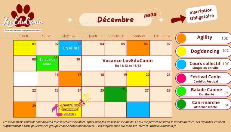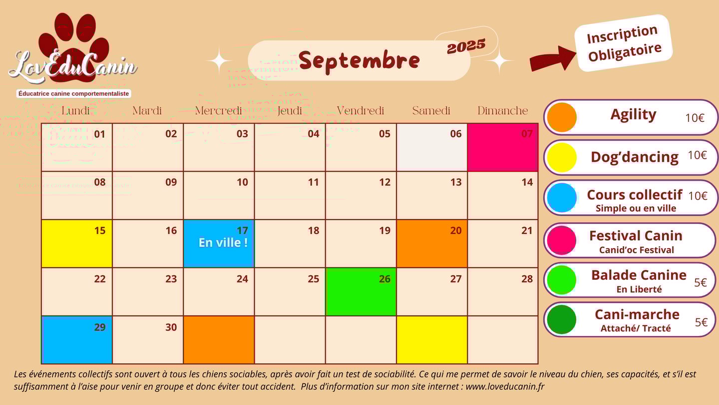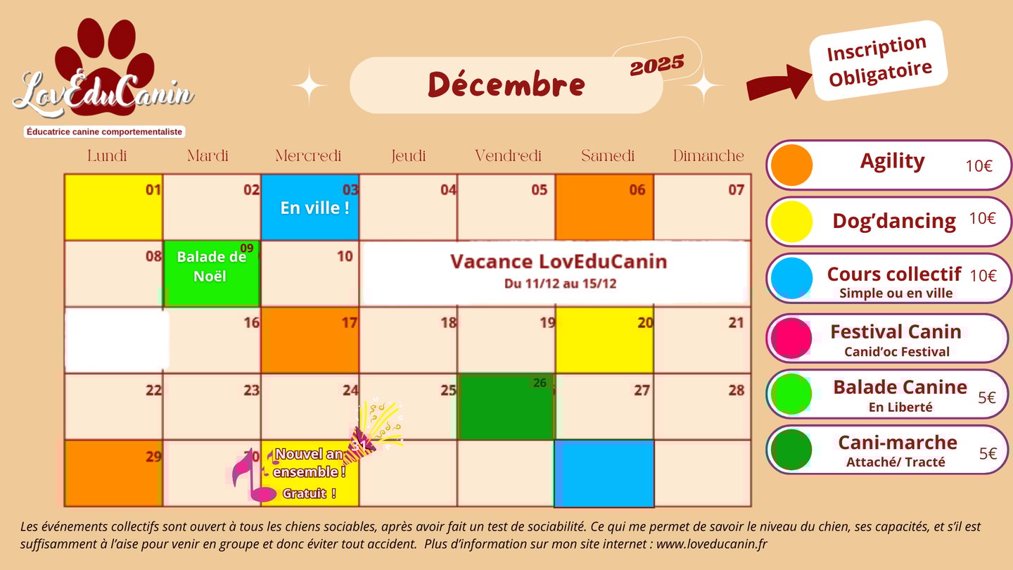 Evenements collectifs Septembre, Octobre, Novembre, Décembre